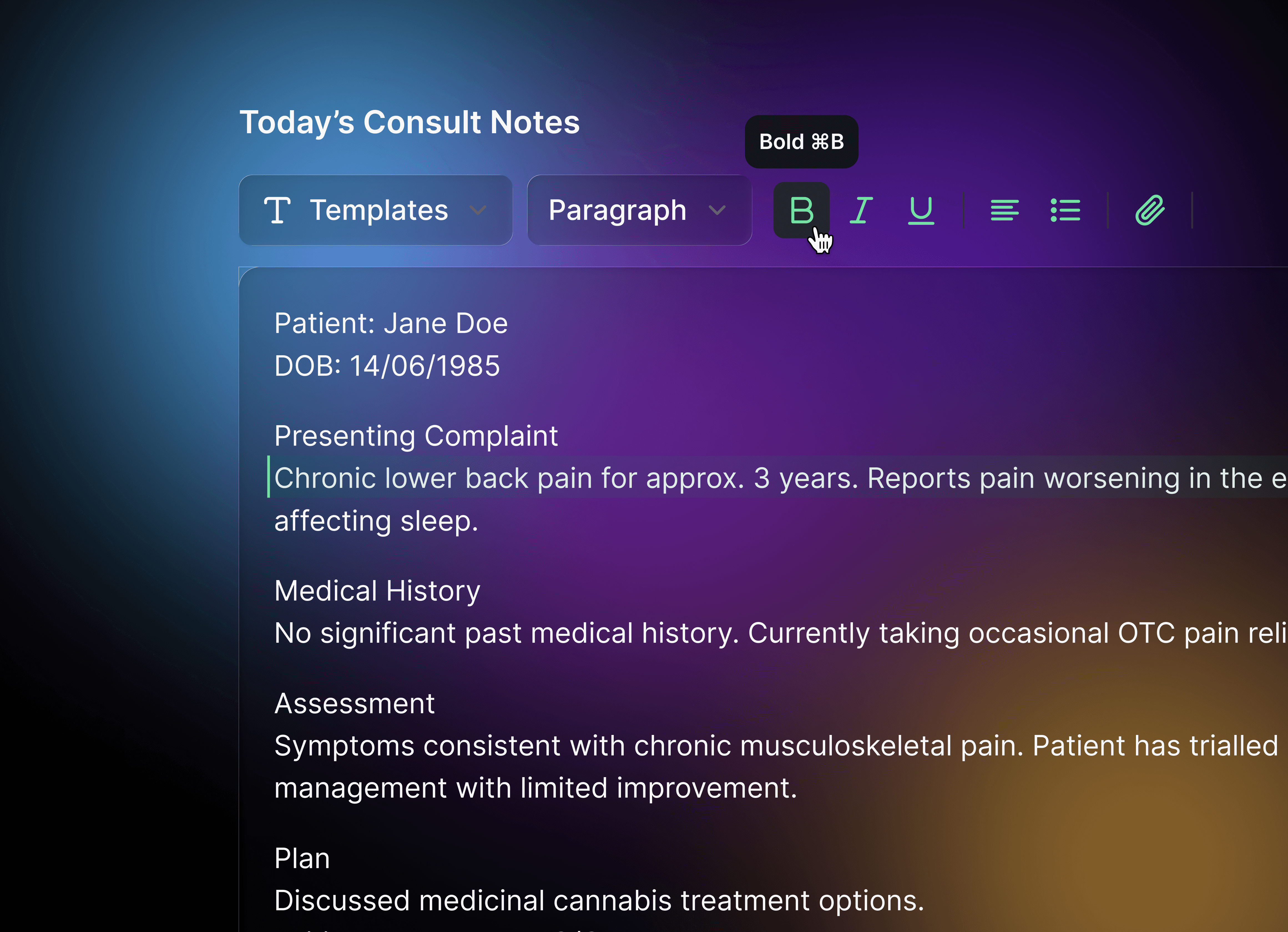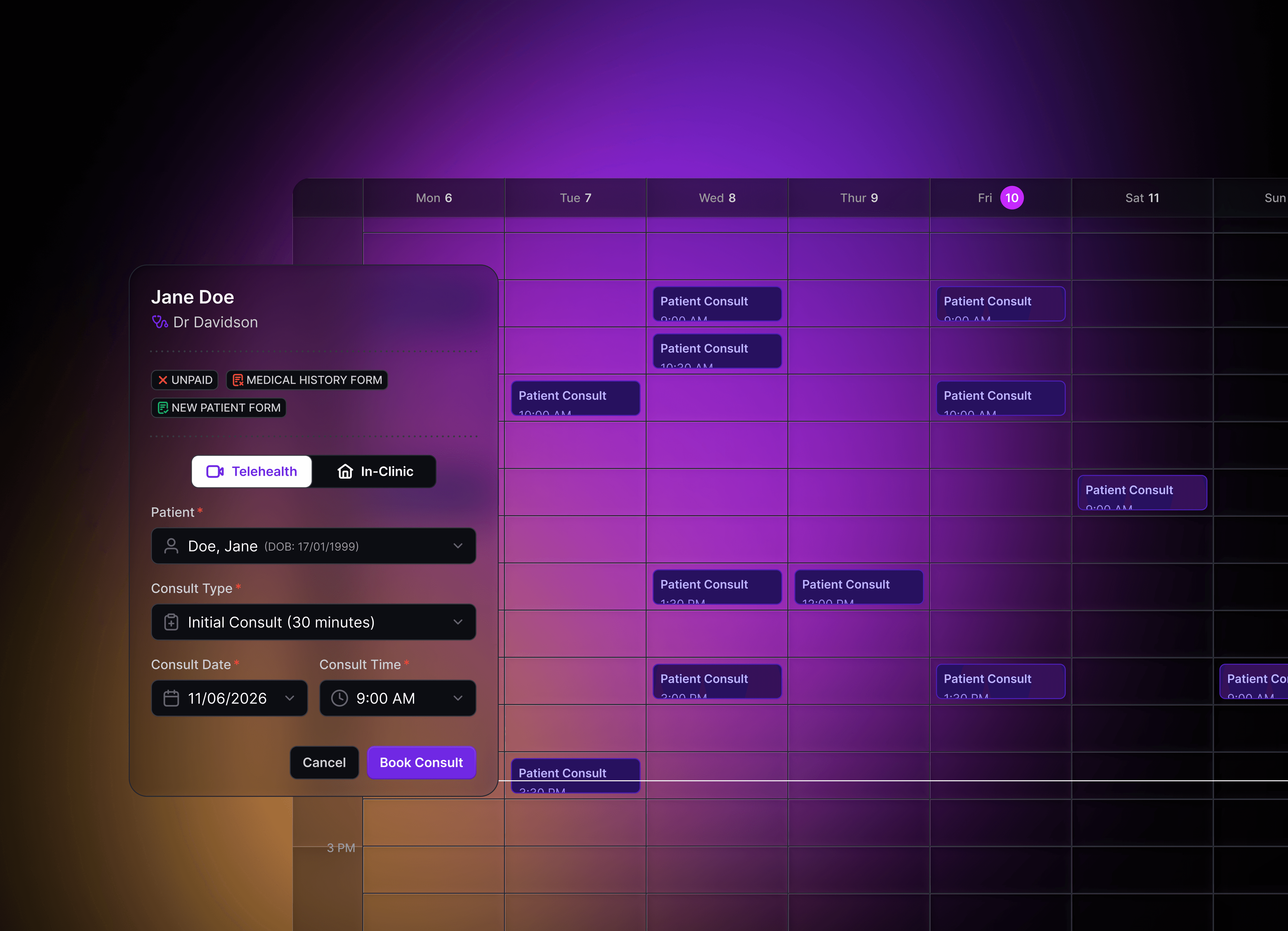 Manage consults, notes, patient forms and bookings in one system.